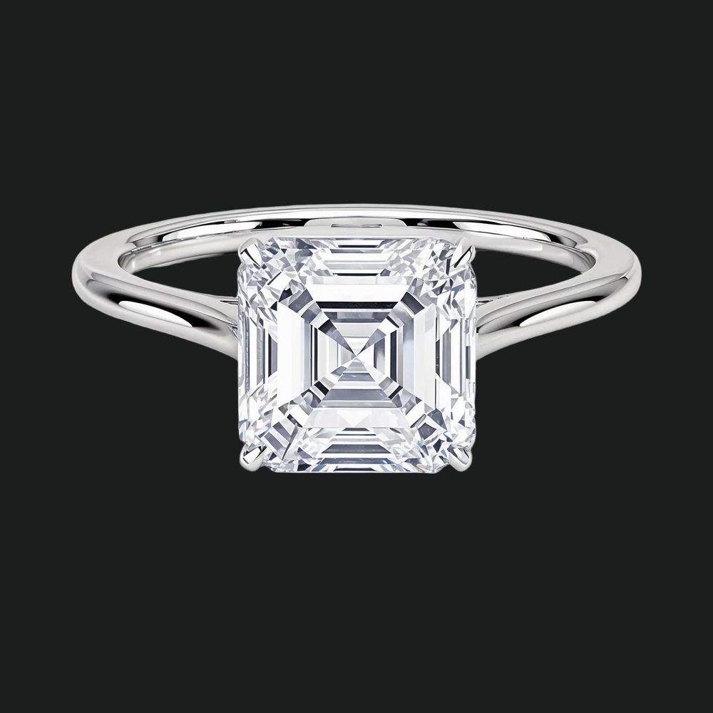 • Centre Stone: The centerpiece is a precisely cut Asscher diamond accent, celebrated for its clean lines and timeless symmetry. This D-colorless stone exhibits a distinct, geometric fire. The carat weight shown is 6mm (approximately 1.00 carat), and is fully customizable to your preference.