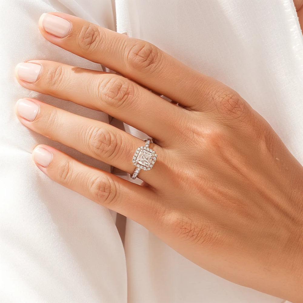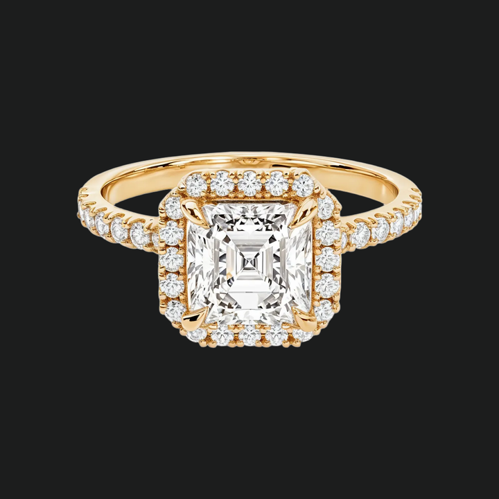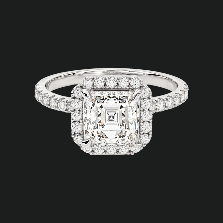 Asscher Cut Halo Engagement Ring with Pavé Diamond Band
