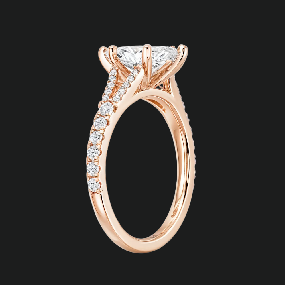 The Marquise Cut Split Shank ring embodies modern elegance with its distinctive elongated silhouette. Designed to enhance the finger's natural grace, it captures and refracts light from every angle, creating a continuous display of brilliance. The contemporary split shank provides visual balance, symbolizing the union of two paths into one harmonious journey.