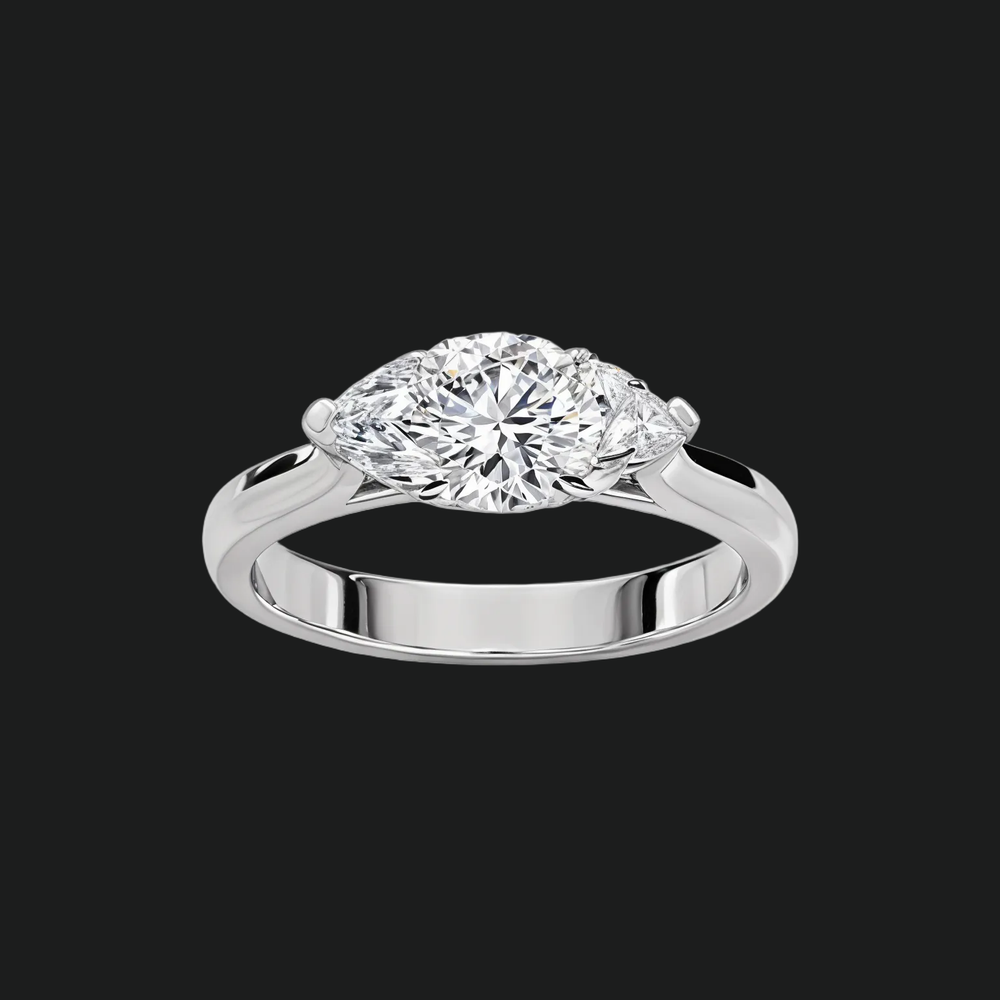 This ring redefines the classic engagement silhouette with its bold, horizontal orientation. The elongated marquise-cut diamond accents are showcased on a clean, architectural band, creating a statement of confident, understated elegance for those who favor a modern perspective.