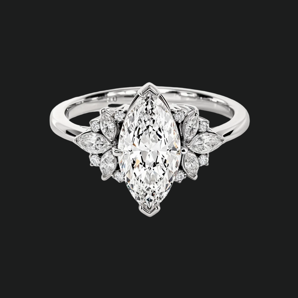 Marquise Cut Floral Cluster Engagement Ring with Diamond Surround