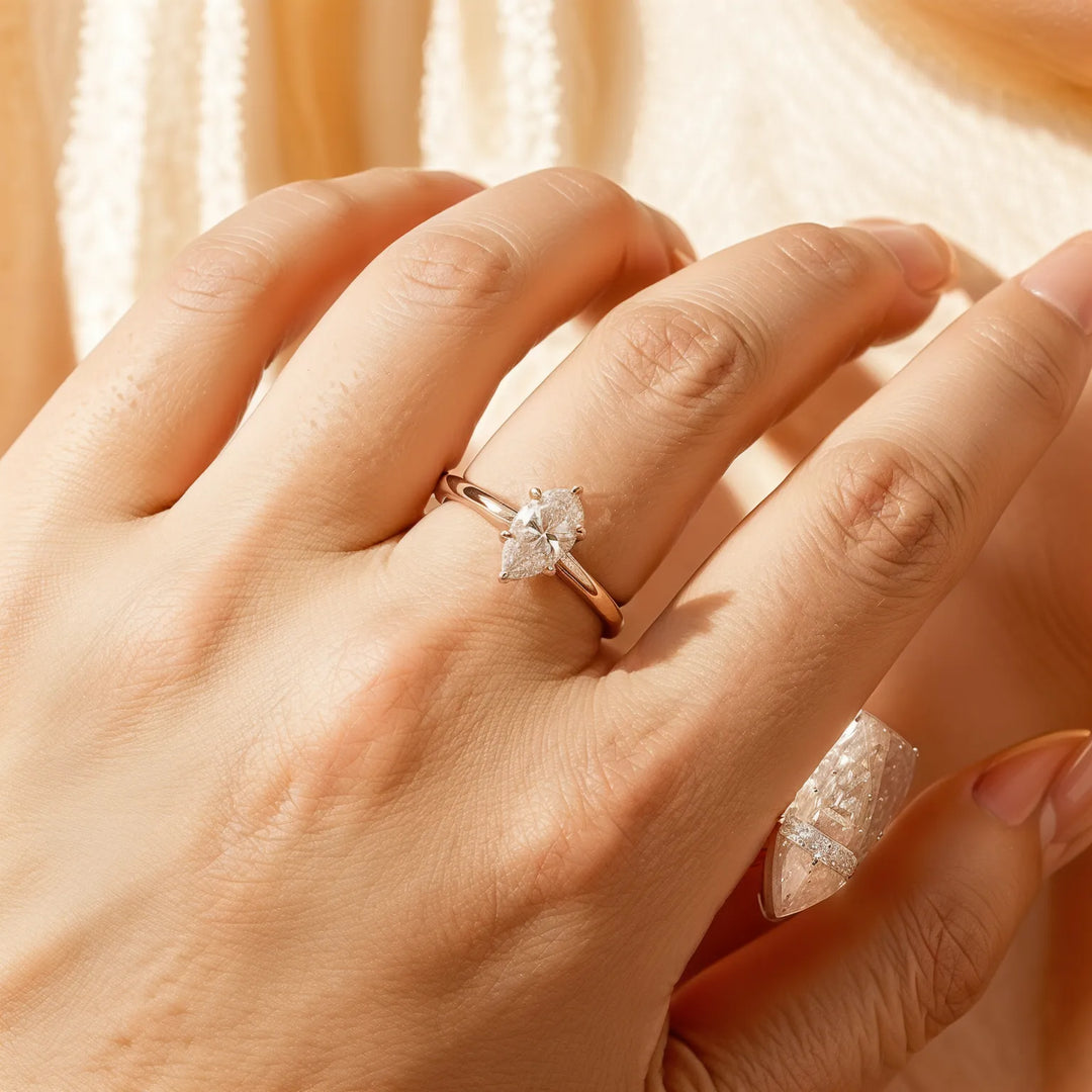 A statement of sophisticated simplicity, this ring captures a singular focus on enduring beauty. The elongated marquise cut, set with precision, creates a silhouette of graceful symmetry and understated confidence, allowing its brilliance to speak for itself.