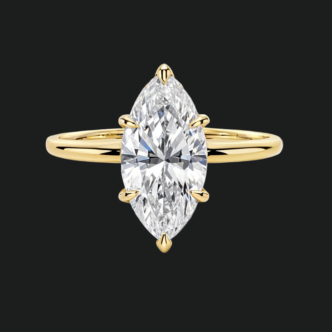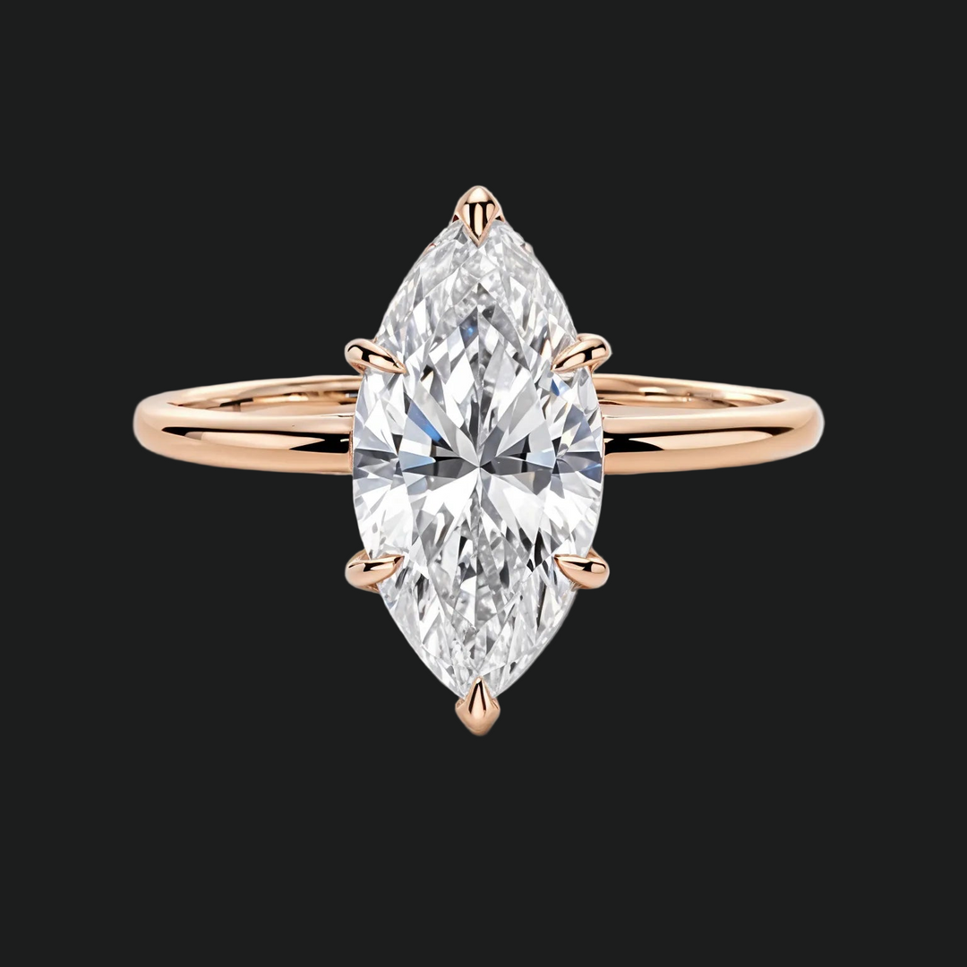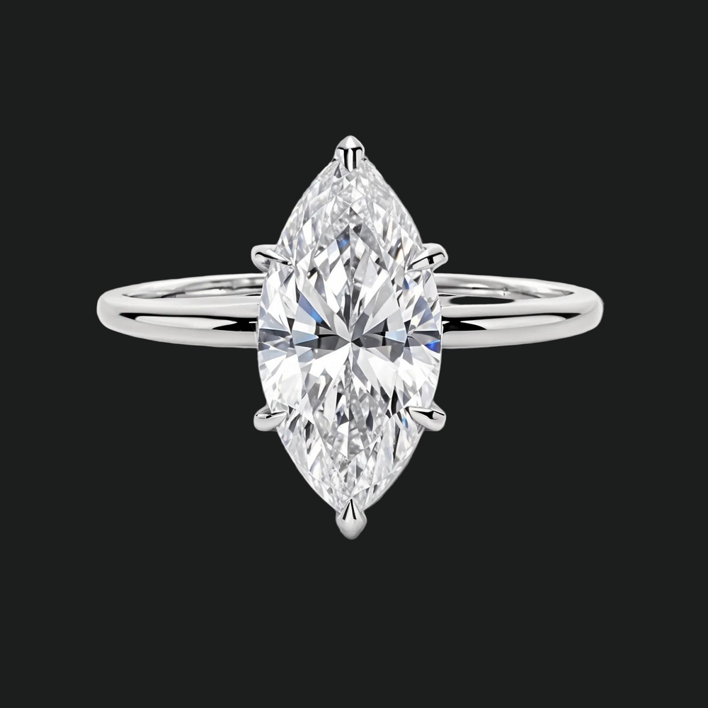 • Centre Stone: The centerpiece is a D-colorless marquise-cut diamond, celebrated for its exceptional fire and a cut that maximizes its refined brilliance. The carat weight is fully customizable to your preference.