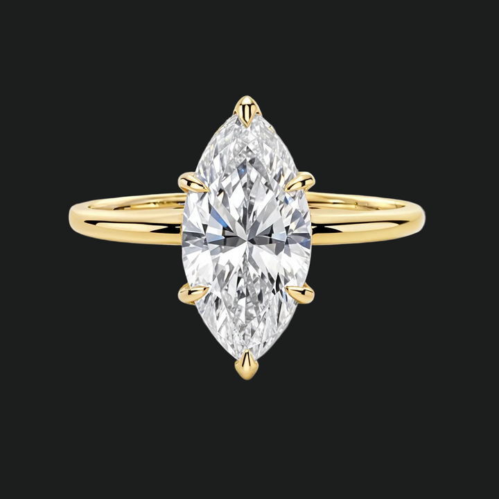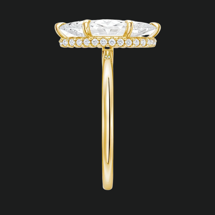 Marquise Cut Solitaire Engagement Ring with Hidden Diamond Halo