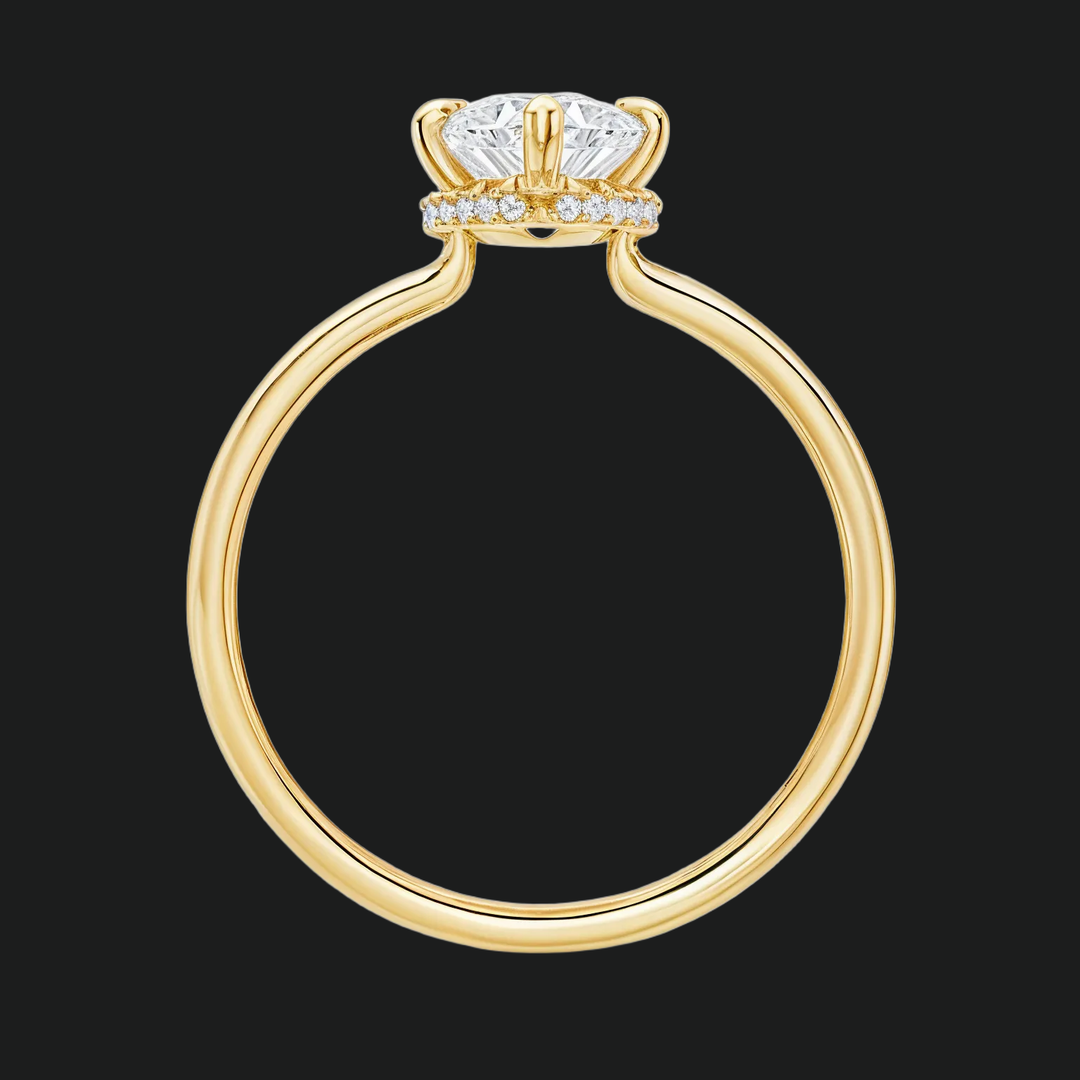 • Setting & Band: Held securely in a classic six-prong setting with protective V-shaped prongs, the stone is elevated by a subtle hidden halo of diamond accents. The band, a timeless slender solitaire, is expertly crafted in your choice of precious metal.