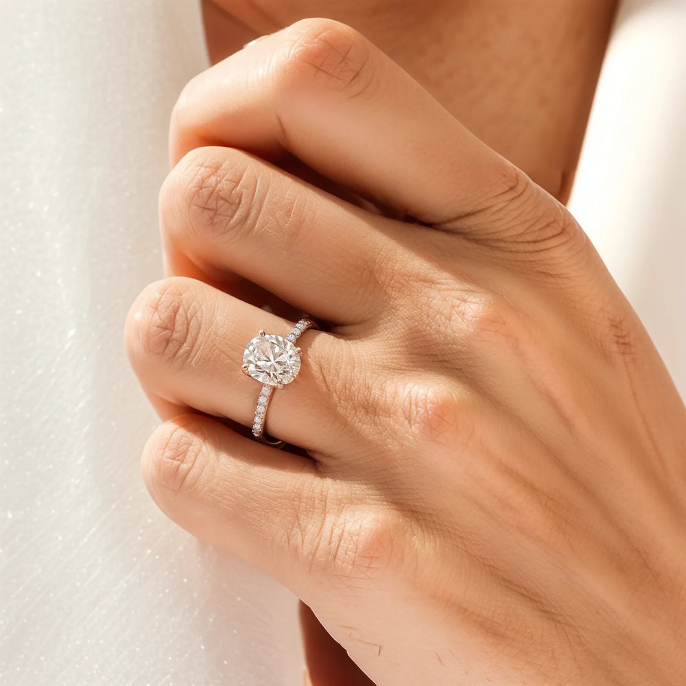 Oval Cut Diamond Engagement Ring with Hidden Halo and Pavé Band
