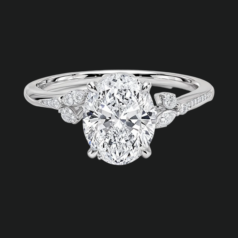 Oval Floral Engagement Ring with Diamond Accents in 9kt White Gold