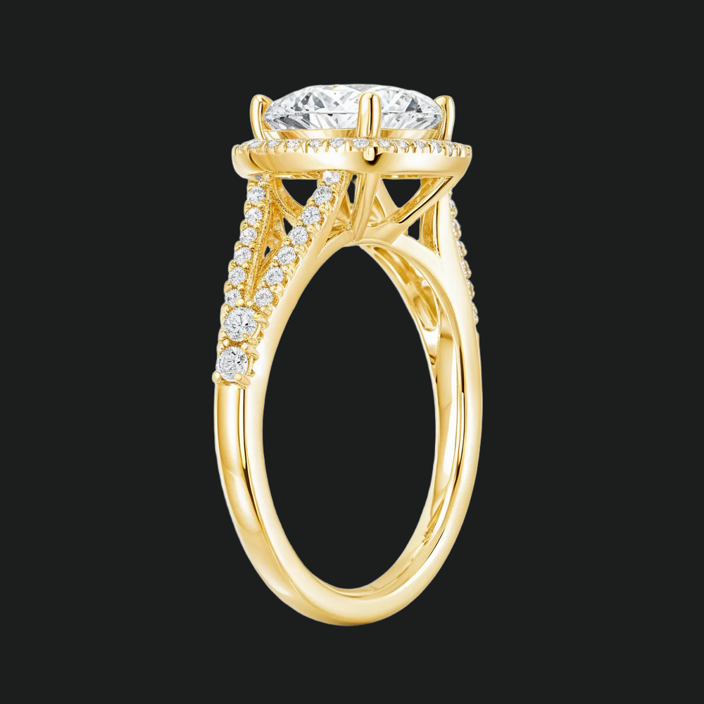 Round Cut Split Shank Halo Engagement Ring with Pavé Diamond Accents