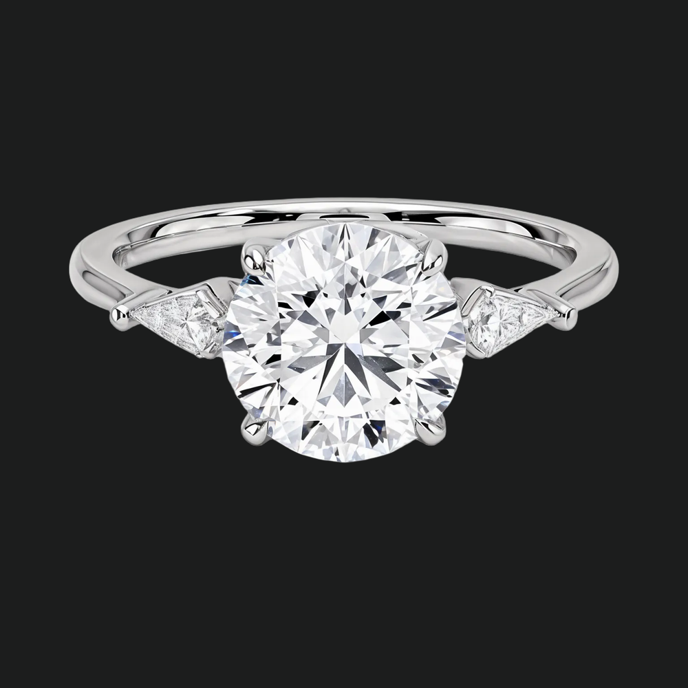 Round Cut Three Stone Engagement Ring with Trillion Diamond Accents