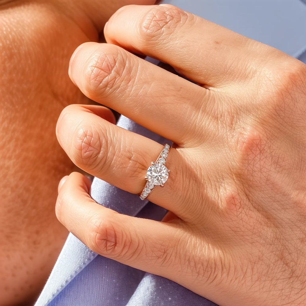 Diplomirani Pavé okrugli dijamantni akcenti zaručnički prsten