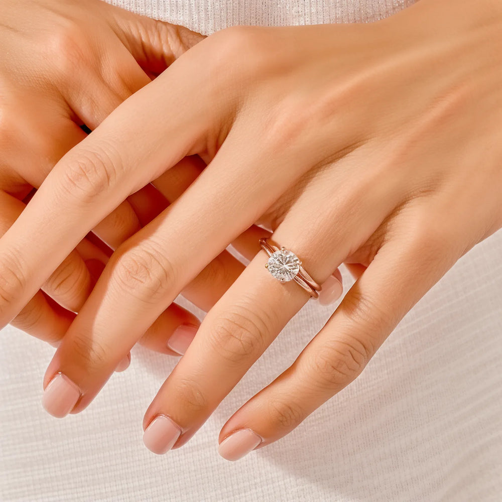 Studija u razmatranoj jednostavnosti, ovaj se set mladenki postiže dubokom elegancijom kroz svoj nepokolebljivi fokus na kvalitetu i oblik. Sjajni središnji kamen je jedinstvena točka svjetlosti, dok prateći bend pruža miran, uvjereni temelj.
