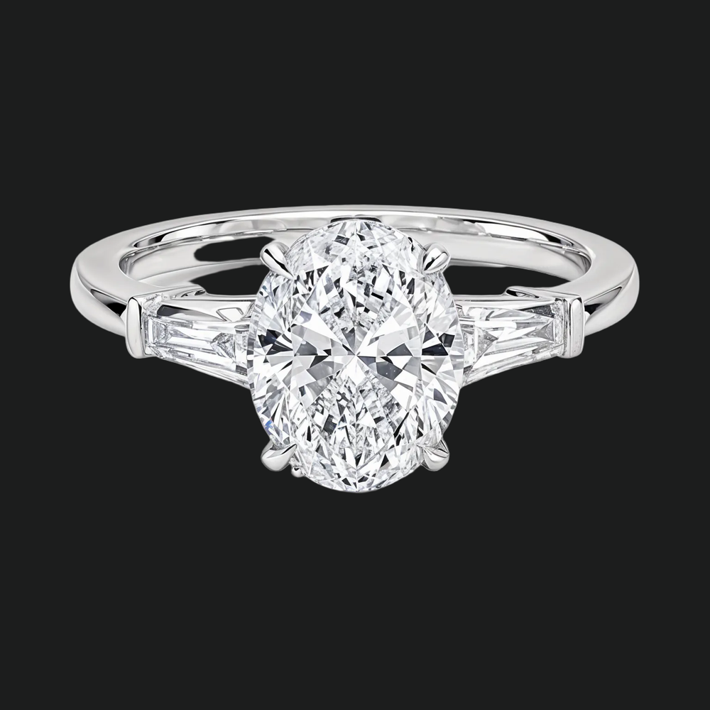 Oval izrežite tri kamena zaručnički prsten s dijamantskim naglascima