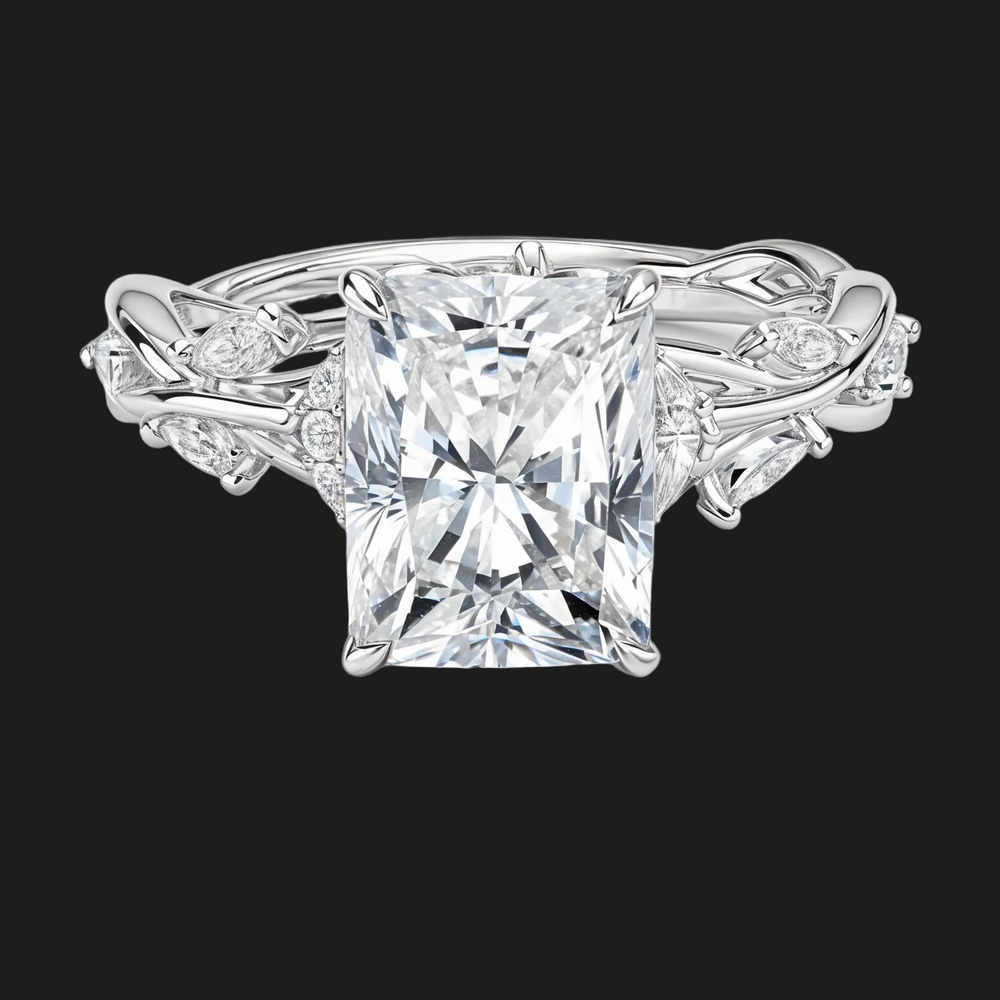 Šaptanje vinove loze Radiant Cut Engagement Ring s dijamantnim naglascima