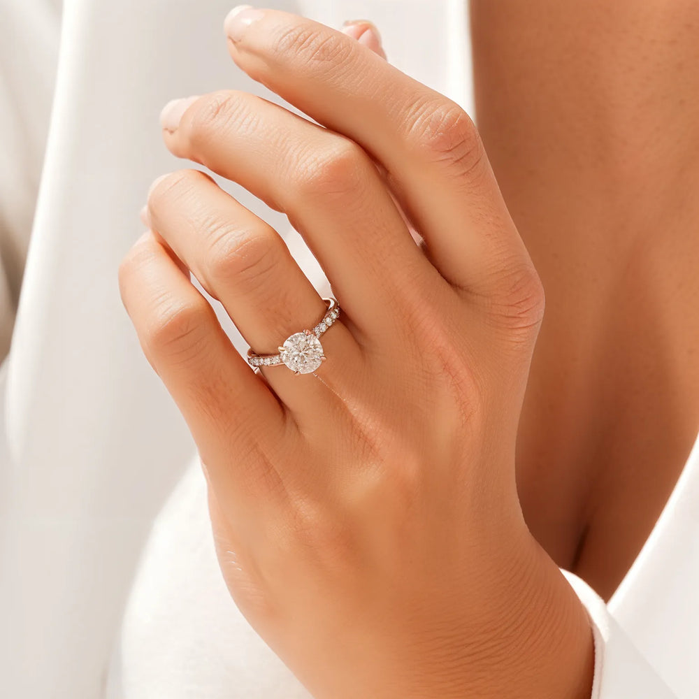 • Postavljanje i pojas: Središnji kamen se održava u sigurnom okruženju s četiri kaw-a, koji se diže iz skulpturalnog pojasa isprepletenog dragocjenog metala. Ovaj 2,0 mm Comfort-Fit pojas pažljivo je obložen s dvadeset okruglih dijamantskih akcenta, postavljenim s mikro zbrkama kako bi se maksimizirao sjaj.